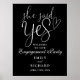 Denna eleganta svarta och vita text "Hon sa ja" välkomstskylt för förlovning kan anpassas med alla era namn och speciella datum. Designad av Thisisnotme©