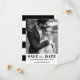 Black and White Classic Typography Photo Spara datum meddelande. Anpassade spara datum meddelande med svart klassisk typografi och rand tillbaka mönster. Personlig genom att lägga till ett eget foto och information. Andra färg finns tillgängliga.