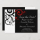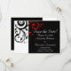 Dold och slående modern contemporary, svart bröllop och papper med svart och vit färg med röda accenter, med delikat rulla löv bakgrund. Anpassa onlinen med bröllop-informationen. Det här objektet är tillgängligt som en fullständig samling i bröllop, inklusive inbjudningar, OSA kort, Spara datumen, magneter, Stickers, Bord Place Cards, Bröllop Planning och Photo Album Binders och Mer!