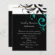 Black White Teal Floral Swirl Wedding InvitationDesignad av Angela CuteComfy Designs