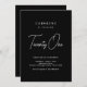 Den här chicen och den moderna födelsedagsinbjudan har en slimmad svart bakgrund med vit snyggt typografi. Blandningen av fet serif och handskrivet manus typsnitt belyser fiendets ålder på ett klassligt sätt som fångar öga. Perfekt för sofistikerade födelsedagsfester eller firande med milstolpe. Den här designen är elegant och enkel, samtidigt som den inte ser tidlöst ut.