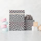 Backa dina presenter i stil med vår moderna återinförda förvrängda incheckade inkapsling Pappert. Den här designen har en fet, förvrängd kontroll mönster i klassiskt svartvitt, och erbjuder en unik och modern vrid till din gåva-ge. Utformningen förbättras ytterligare av anpassadet Red and white initialer, vilket gör att du kan lägga till en personlig beröring i dina gåvor. Byt bara ut initialer mot valfri text eller initialer för att göra det verkligt unikt. Oavsett om det gäller födelsedagar, årsdagar eller bara en speciell överraskning, så är det här inslagna papper säkert att få dina gåvor att framträda.