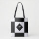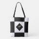 Tittar du perfektens tillbehör för ett dagligt utseende och en chic? Den här vackra och moderna svarta och vita schaktade Tote Bag, med diamantform, är till dig! Du kan anpassa den enkelt genom att lägga till ditt monogram. Det är lika bra perfekt för dina flickvänner på födelsedagar, Alla hjärtans dag eller andra tillfälle.