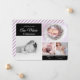 Avslappnad och elegant, denna våldsamma och lavendelbakgrund och snyggt-typografi är scenen för ett vackert födelsemeddelande för er nyfödd bebis-flicka. Med plats för en multifotokollage av ditt barn är det här kortet ett underbart sätt att presentera baby för familj och vänner. Samordningen av lila strandade mönster på baksidan.