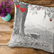 Svart Och Vitt Natur Med Röda Hjärtan Kudde