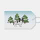 Svart och vitt papilloncute-Hund i vinterskog Presentetikett