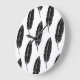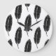 Svart och vitt, Rustic Feather Linocut Stor Klocka