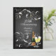 Elegant personlig jubileumsfestinbjudan för 25-års eller något annat år. Vackra och festliga inbjudningar med svart-vit design med elegant virvlande mönster och två glas bubblande champagne med gröntonad champagneflaska för att fira dagens hjältar stora dag. Svart och silver bakgrund med svart-vita virvlar
