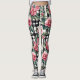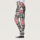 Svart och vitt skäggigt med Rosa Camellias av läde Leggings