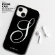 Skapa din egen snyggt, elegant iphone case och skydda din mobila i stil! Den här eleganten fodral har ett snyggt med ett skript av typen calligraphy stil med stor elegant som initieras i vitt på en svart bakgrund och namn vid grund i ett enkelt formaterat teckensnitt. Välj från tunn eller tuff stil i iphone case och din modell iPhone enkelt i listrutorna.