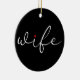 Svart och vitt skript, rött hjärta julgransprydnad keramik