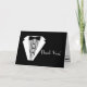 Denna klassiska design har en svart-vit smoking med svart fluga på svart bakgrund, med orden "Tack". Anpassa detta tackkort genom att klicka på "Anpassa" och följ de enkla instruktionerna! Tips: när du utformar - håll dig inom de röda prickade linjerna! Texten behöver vara liten. Köp kompletterande produkter. Besök min butik "The Hungarican Princess" på www.zazzle.com/hungaricanprincess*. Titta i min "Bröllop"-avdelning eller "Tack-gåvor till bröllopsdeltagare"-samling.