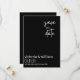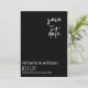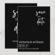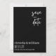 sprid den fantastiska nyheten om din bröllopsdag med detta moderna trendiga save the date-kort, i stilrent svart och med elegant vit text
