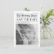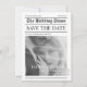 Vi presenterar vårt unika Svart- och White Photo Bröllop spara datum-kort, ett vintage-inspirerat mästerverk som går utöver det vanliga. Lägg dig i den klassiska journalistisens allrik med en modern vrid, eftersom dessa sparar datumkorten sömlöst blandar den svarta och vita fotografiens charm med den unika tidningslayouten. Varje gång du sparar datumkortet blir det en berättelse som fångar kärlek:s innersta väsen i en tidlös berättelse som är elegant och sofistikerad. Bygg upp det okonventionella med denna speciella samling, där giftermål i vintagens estetik och moderna utformning skapar ett verkligt oförglömligt tillkännagivande för ert kommande bröllop.