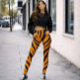 Svart Orange för utskrift av vild Side Tiger Leggings