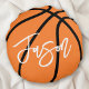Runda kuddar med en basket i svart och orange och ditt namn i vitt. Alla färg är anpassade i designen verktyg.