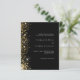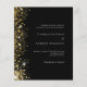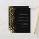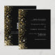 En modern bröllopsinbjudan. Svart bakgrund dekorerad med faux guld glitter-gnistor. Anpassa och lägg till information om namn och bröllop. Vit färgad brev. Tillbaka: Lägg till länken/URL:en på webbplatsen bröllop för information och/eller OSA. 1 lakan = 1 inbjudan utskriven kant till kant.