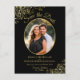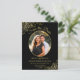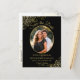 Detta vackra förhandsinbjudan-kort är designat för att ge dina vänner och familj ett förvarning om ditt kommande bröllop. Det har en enkel men elegant design med guldtext på svart bakgrund, och ditt foto i en oval ram omgiven av krulliga guld-falska foliekrullar och virvlar. Baksidan har en söt grafik som lyder "skriv in oss" och utrymme för en anpassad anteckning.