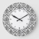 Den här väggklockan har ett svart dämpningsmönster på vit bakgrund.