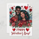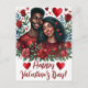 Det här vykortet har ett svart par i lycklig omgivet av röda hjärtan och ramat av röd ros. I texten står det "Glad Alla hjärtans dag", men det är anpassade. Vattenfärgsgrafiken brinner med kärlek och tillgivenhet i ett rött och vitt färg-schema.