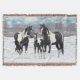 En familj med svarta målarhästar på vintern.