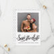 Det här moderna penselskriptet bröllop spara datum är enkelt att utforma och har en del hand plockade ord på vit bakgrund. Layouten påminner om ett fotografi av polaroidtyp, men ram kant är grovt och oregelbundet. Baksidan av det här bröllop spara datum-kortet är också vit men innehåller en svart polka punkt mönster. Det finns plats för ett stormigt foto av paret. Detta moderna, enkla men trendig bröllop spara datum-kort är redot att vara personlig.