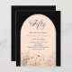 En elegant-jokerinbjudan. Svart bakgrund och en persiko-färgad. Dekorerad med vattenfärgade vilda blommor i beige, rosa. 1 lakan = 1 inbjudan tryckt kant till kant.