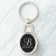 Svart Personlig Monogram och Namn med Script Ovalt Silverfärgad Nyckelring
