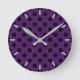 Svart polka dots på plommonets lila rund klocka