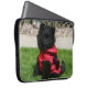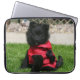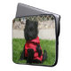 Svart Pomeranian valp tittar kamera Laptop Sleeve