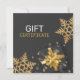 helgdag av hög elegant med glamorös snöflingor guld glitter och presentlåda på en svart grått-antracit-bakgrund i mörk. Det här festliga presentkortet är perfekt för ditt lilla företag eller för presentvänner och familj, särskilt för jultider.