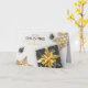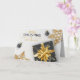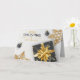 Elegant semesterdesign av hög kvalitet med glamourösa gnistrande snöflingor i guld, julgranskulor i svart och en svart presentlåda på en ljusgrå bakgrund. Denna festliga säsongsbetonade hälsning är perfekt för ditt lilla företag eller som en present till vänner och familj.