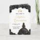 Detta eleganta och glamourösa Quinceañera-program presenterar en vacker prinsessa med mörkt hår i en svart bolls klänning. Texten kombinerar handskriven skrift och moderna sans serif-teckensnitt för en klassisk och sofistikerad look. De blomsterarrangemang och guld konfetti skapar den perfekta blandningen av rustik och chic.