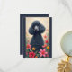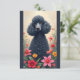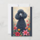 Svart pudel och blomsteranteckningskort.