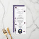 Tillsätt en nypa spöklikhet till din Halloween-firande med denna "Plum Spooky Pumpkin Spider Autumn Leaf Halloween-meny". Designen blandar höstens väsen med Halloweens lekfulla anda och har med fantasifulla pumpor, spöklika spindlar och höstlöv i plommonfärgade nyanser. Denna menykort sätter scenen för en förtjusande festmåltid och visar upp dina spöklika godsaker och drycker. Det är det perfekta valet för att charma och underhålla dina gäster under denna förtrollande tillställning. Menyn visar orden "Skrik, käka och bli spökig!".