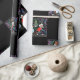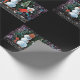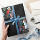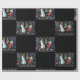 Black Wrapping Papper Black-bakgrund och scener i julschassen arrangerade som en schackbräda, en unik papper med illustrationer av vintagar