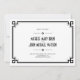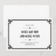 Elegant Art Deco-ram Bröllop Spara datum-kort design på vit bakgrund, helt anpassningsbar och inställd som en mall för enkel anpassning. Samma design Bröllopsinbjudan, RSVP-kort och infogningskort listas nedan.