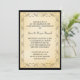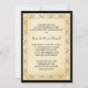 Detta är en enkel men vacker inbjudan till 50-års bröllopsjubileum. Din text i svart är placerad på en brännd ljusgyllene bakgrund, som är inramad med en vintage dekorativ virveldesign. Hela bilden är kantad med dramatiskt svart, och baksidan av inbjudan är också svart. Mycket formell utseende, och mycket elegant! Denna inbjudan är mångsidig nog att användas för alla formella tillfällen.