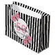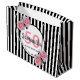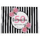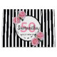 Klassiskt smalt svart och vitt lodrät rand som bakgrund. Med giftigt, feminin och romantiskt rosa ros som dekoration. Perfekt för en elegant 50:e födelsedagsfesten för henne. Ett vitt och svart ram med mallar för namn, ålder och datum. Ålder nummer 50 i rosa, namn och datum i svart. Namn är skrivet med ett handskript i stil.