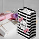 Klassiskt smalt svart och vitt vågrät rand som bakgrund. Med giftigt, feminin och romantiskt rosa ros som dekoration. Perfekt för en elegant på 40-årsdagen party för henne. Ett vitt och svart ram med mallar för namn, ålder och datum. Ålder 40 i grått, namn och datum i svartvitt. Namn är skrivet med ett handskript i stil.