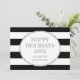 Glad helg julfotkort i svartvitt rand mönster med uppgifter om silver och anpassningsbar.