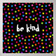 En färglös roligt poster att en konfetti polka dots mönster är i svart och regn och ord "vara snäll" i mitten. Text kan vara personlig.