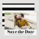 Black Retro Fold Typography Photo Spara datum meddelande. Modern spara datum meddelande med återformig typografi med svart och vitt rand mönster. Personlig genom att lägga till egna uppgifter. Andra färg finns tillgängliga.