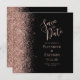 Det moderna bröllop spara datum-kortet från elegantens lämnat kant har ett faux glitter gräns i ro i guld. Med anpassadet kombineras handskrift för färgad i blek ro guld, tryckplåt och kursivt typsnitt mot svart bakgrund. Den omvända sidan har en matchande design för svart och ro guld.