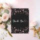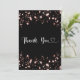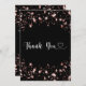 En svart bakgrund, dekorerad med ro guld-stjärnor. På framsidan med stora bokstäver och texten: Tack med hjärta. Tillbaka: Anpassa och lägg till tackkort och namn. Namn är skrivet med ett modernt handskript i stil. Vit text.