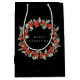Elegant, svart, jul/högtid presentpåse med personligt meddelande. Med en krans av handmålade röda bär och eukalyptus. All text är fullt redigerbar så att du enkelt kan ändra typsnitt stil/färg/storlek och ta bort eller flytta text. Olika storlekar påsar och matchande artiklar finns tillgängliga i min butik.