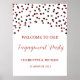 Anpassad text välkomstskylt för förlovningsfest med svart och röd konfetti.