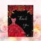 Observera att tackkortet är pappert och mycket tunt. Kuvert ingår inte. Du kan besöka vår butik om du vill ha fler tackkort (samma design). En feminin och elegant-tackkort. En svart bakgrund med röd faux glitter, gnistor, röd ros och röd klänning. På framsidan finns ett skript med stora bokstäver och texten: Tack. Tillbaka: Anpassa och lägg till tackkort och namn. Namn är skrivet med ett modernt handskript i stil.
