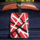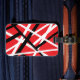 Svart, röd och vit grafik bagagebricka