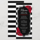 menymeny kortsvarta vita ränderröda rosorglitter silverelegantklassiskrepetitionbröllopsmenymodern